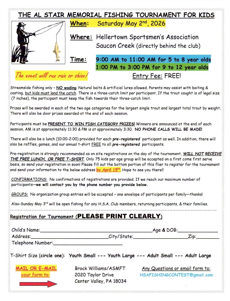 If you are interested please respond to activities@hellertownsportsmen.com and share with us the number of children and their ages.  We require all kids to bring their BB gun (please no BB pistols) if they have one, safety glasses, and either a yoga mat or towel for added comfort.  Please remember, adults must stay with their child for safety purposes.